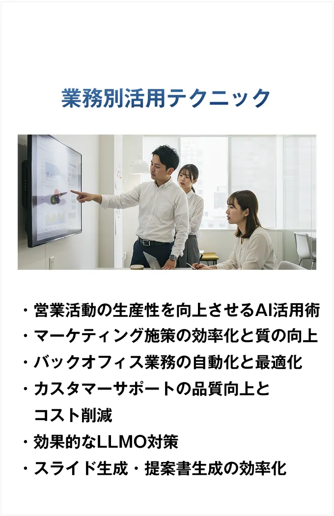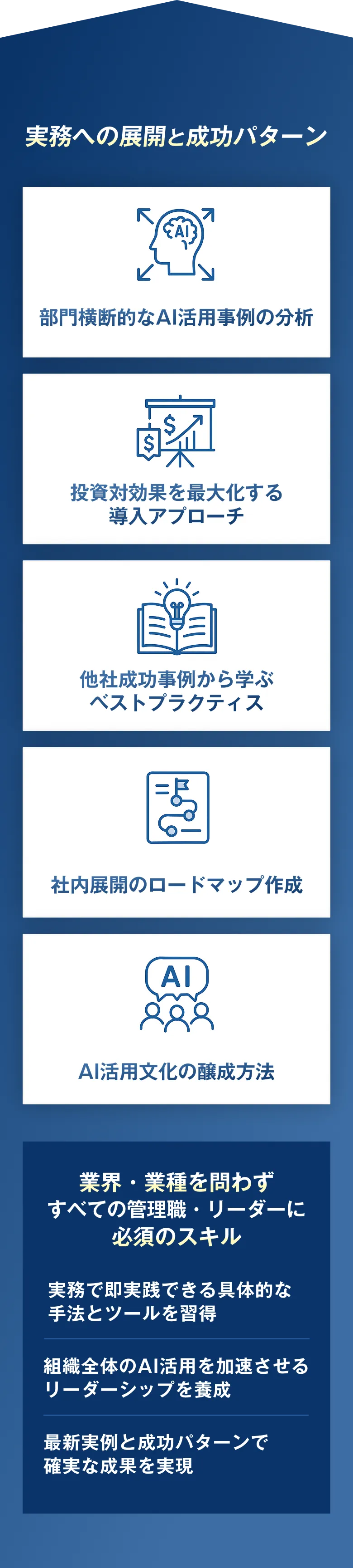 生成AIの本質から戦略的活用法まで体系的に学べたため、どのように組織全体のAI活用をリードすればよいかが明確になりました。